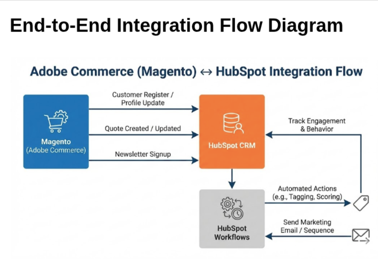 Connecting your ecommerce storefront to your CRM is one of the simplest ways to boost marketing efficiency, understand customer behavior, and close more sales. HubSpot is a modern marketing and CRM platform, and when paired with Adobe Commerce (Magento), both systems together create a fully connected customer experience.