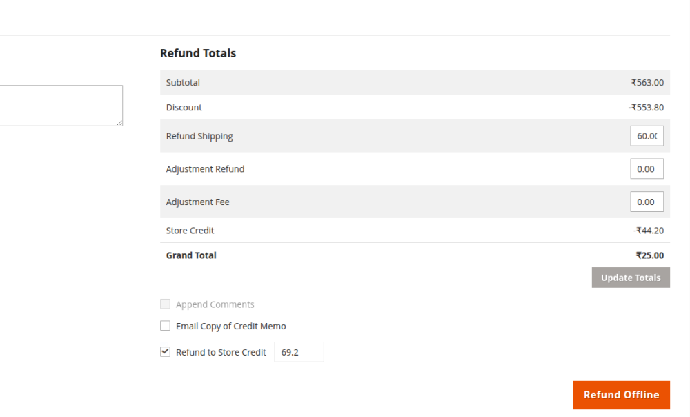 After an order is paid and invoiced, the merchant can issue a Credit Memo to refund the customer. Instead of refunding the amount through the original payment method, the admin can choose: