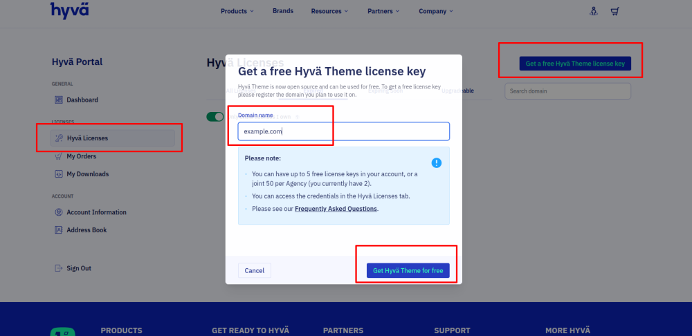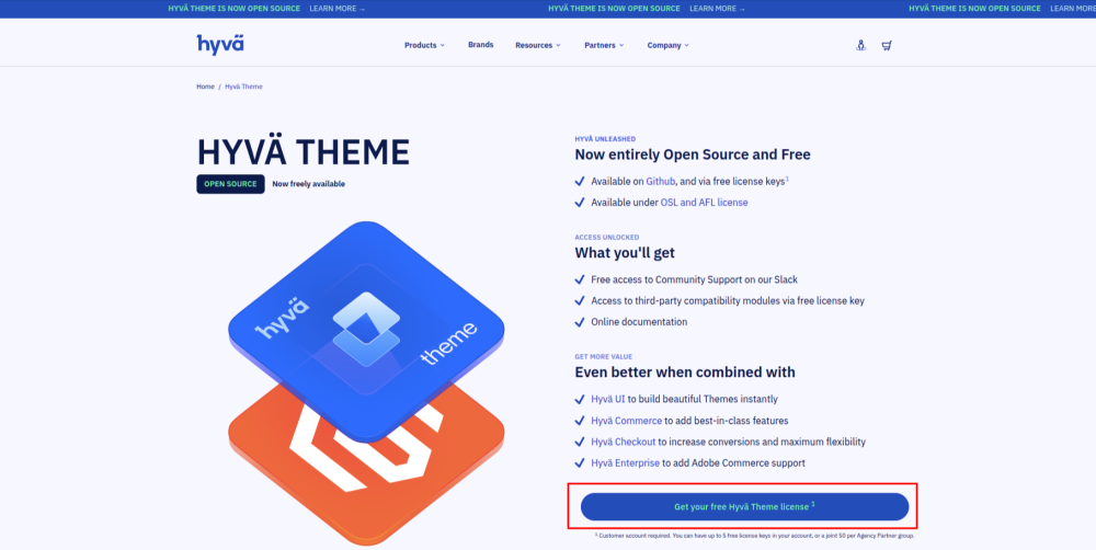 - Click on Get Your Free Hyvä Theme License