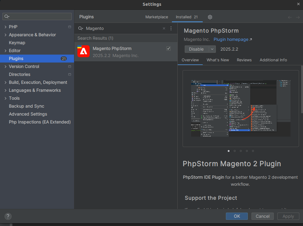 - Search and install: Magento PhpStorm