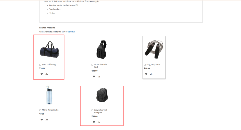 If you add SKUs 24-MB01 and 24-MB03, these will display with the products from Step 2.